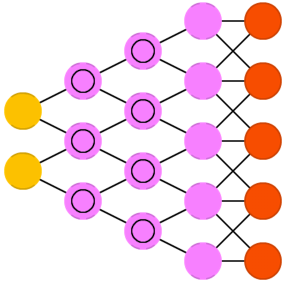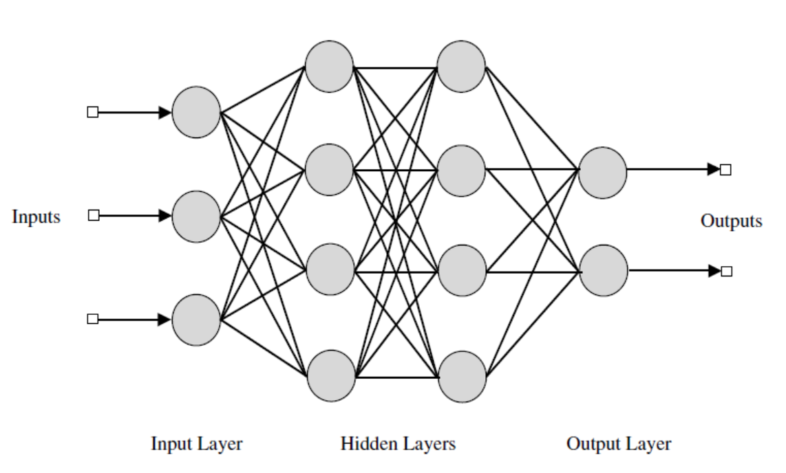 The feedforward neural network was the first and simplest type. In this network the information moves only from the input layer directly through any hidden layers to the output layer without cycles/loops.