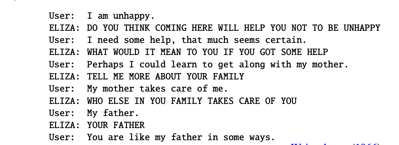 ELIZA - a psychotherapist in 200 lines of code. Author: Joseph Weizenbaum.