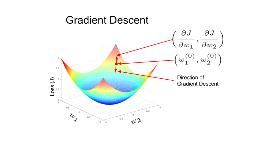 GD steps are computed via \[\begin{align*} &w_1 := w_1 - \alpha \frac{dL}{dw_1},\\ &w_2 := w_2 - \alpha \frac{dL}{dw_2},\\ &b := b - \alpha \frac{dL}{db}. \end{align*}\]