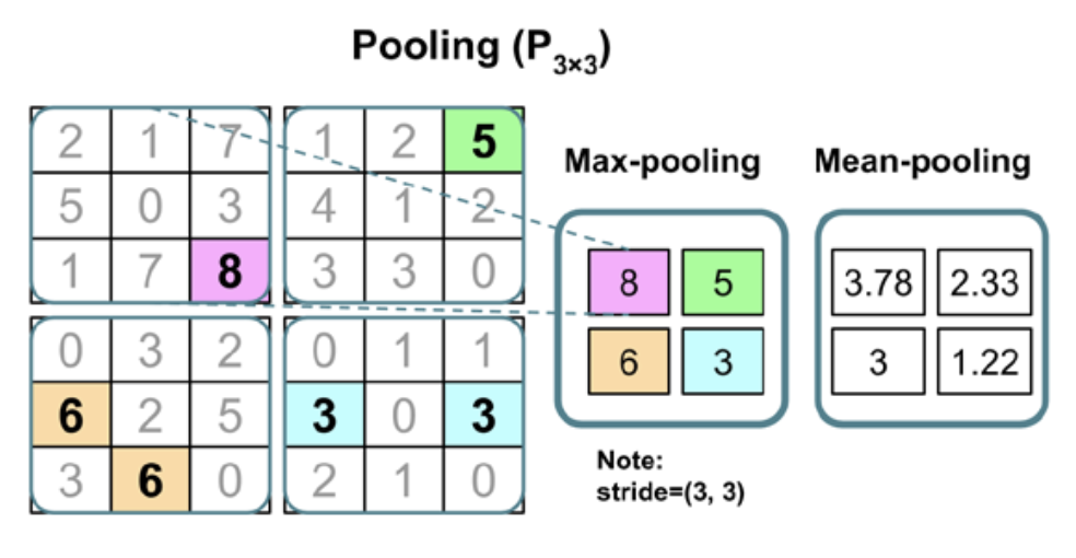 The following properties affect the output size \(o_j\) of a pooling layer along axis \(j\):